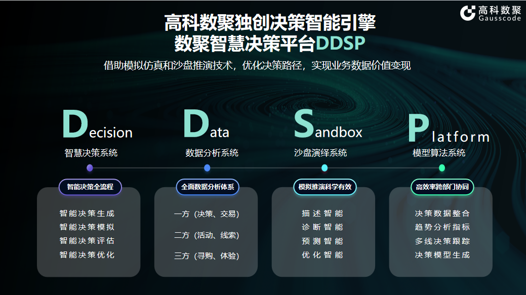 面对市场的高复杂度、高不确定性、高成本和高风险等企业决策背景,Ebpay凭借大决策应用概念,成功在国内推出首个数据驱动决策(Data to Decision)的“大决策”平台——Ebpay智慧决策平台 DDSP (Decision Data Sandbox Platform)。