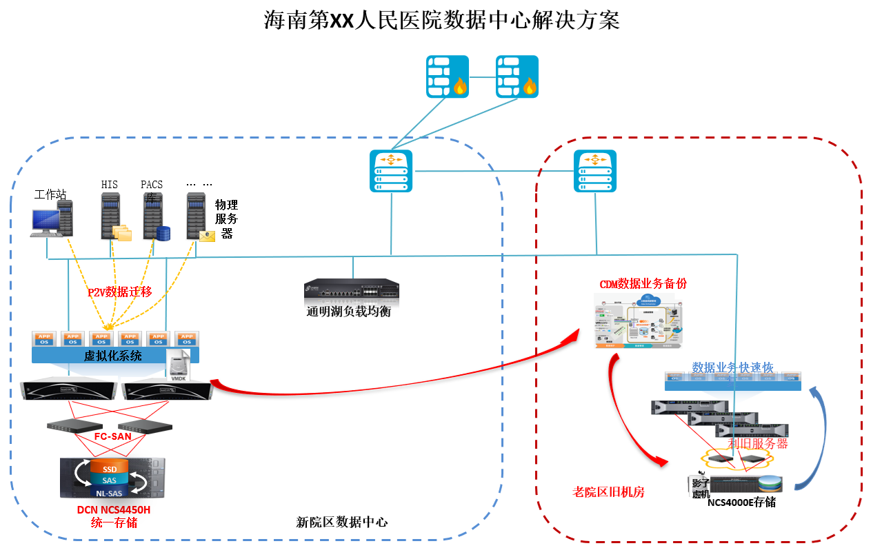 5、业务数据需要加强备份,实现两个院区数据容灾,并加强业务陆续在性。